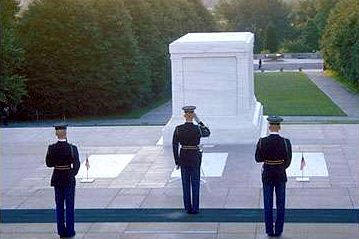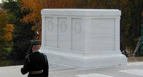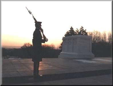 He carries the rifle on the shoulder away from the tomb. After his march across the path, he executes an about face and moves the rifle to the outside shoulder.